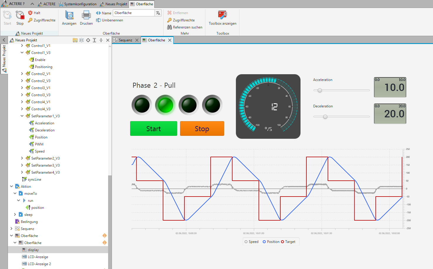 ACTERE offers graphical programming of complex and parallel processes. Parallel processes can run concurrently or alternatively. ACTERE uses Groovy as the scripting language. It offers open and extensive interfaces to the communication and I/O. The ACTERE enables measurement, documentation, assessment and analysis to be carried out online (all actions take place during the measurement) All process steps are logged and traceable. The ACTERE is a software for controlling our actuators (μAct, mini-Act, HiL-Act, servo motors, robots...) including various, predefined function modules with intelligent measurement data storage. Furthermore, this innovative software supports MDF.4 files. It offers flexible access control through individual assignment of rights to individual users and user groups.