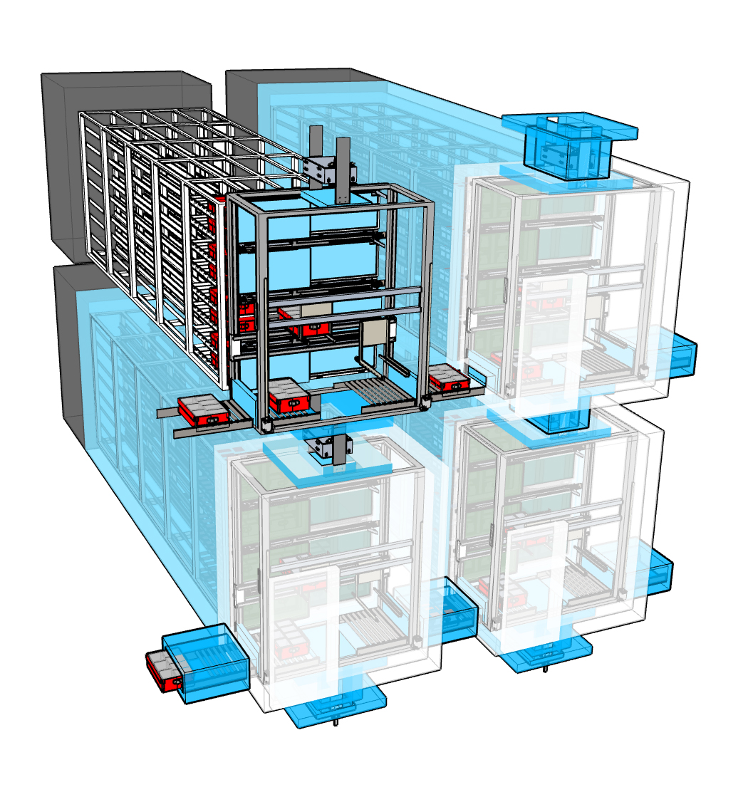 Robotic system and applications for fully automated storage, sorting, labeling, picking and testing of medication vials in the climatic chamber up to -30°C.